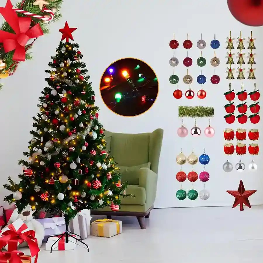 Arvore De Natal Verde 120cm 100 Galhos Completa Com Enfeites