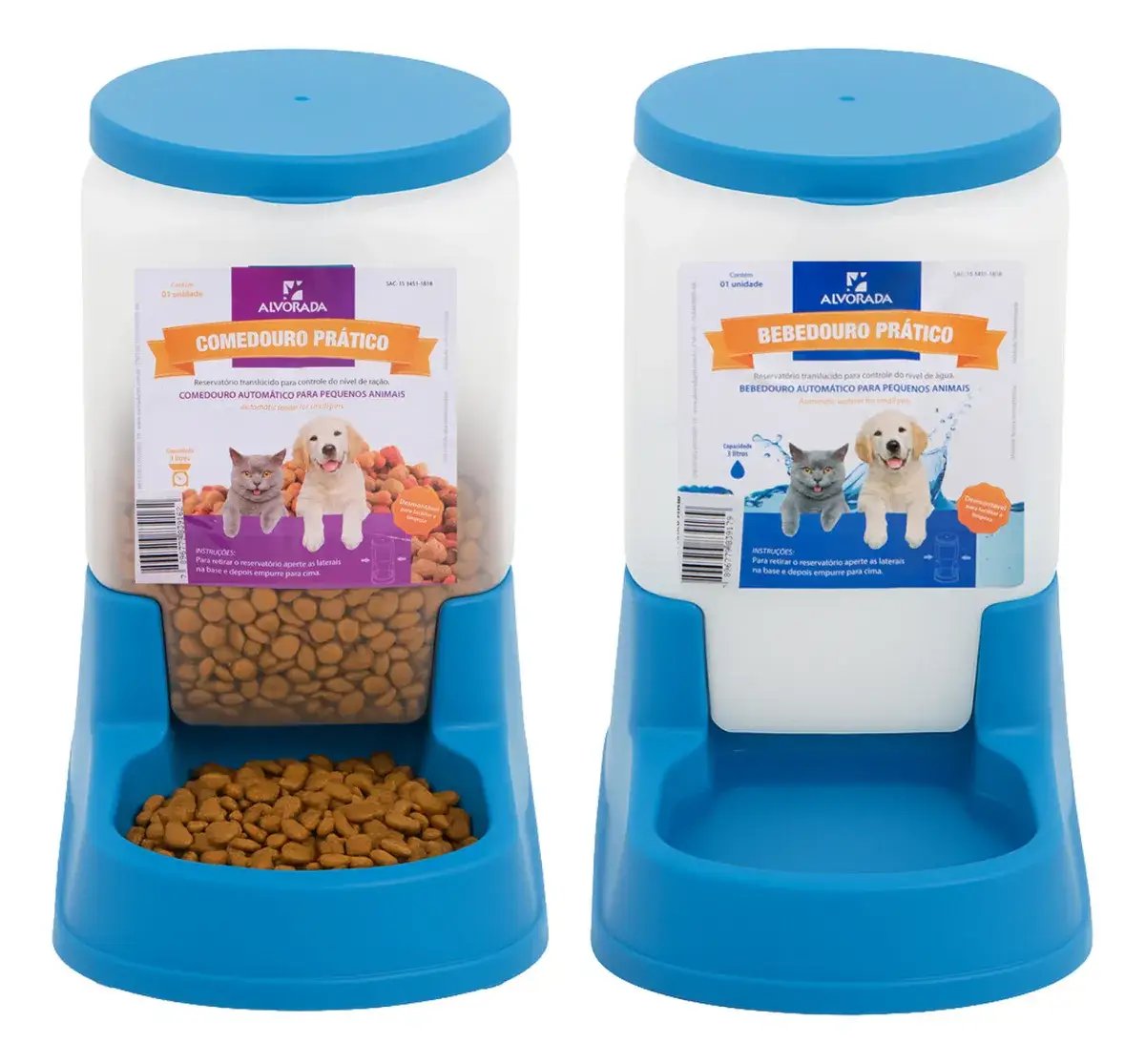 Kit Comedouro/bebedouro Peq. Automático 3 Litros Cães Gatos Cor Azul