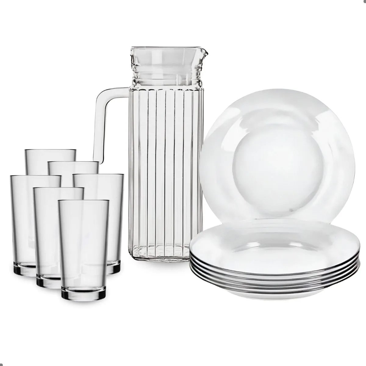 Jogo De Pratos Fundos Com Jarra E Copos 13 Peças Em Vidro