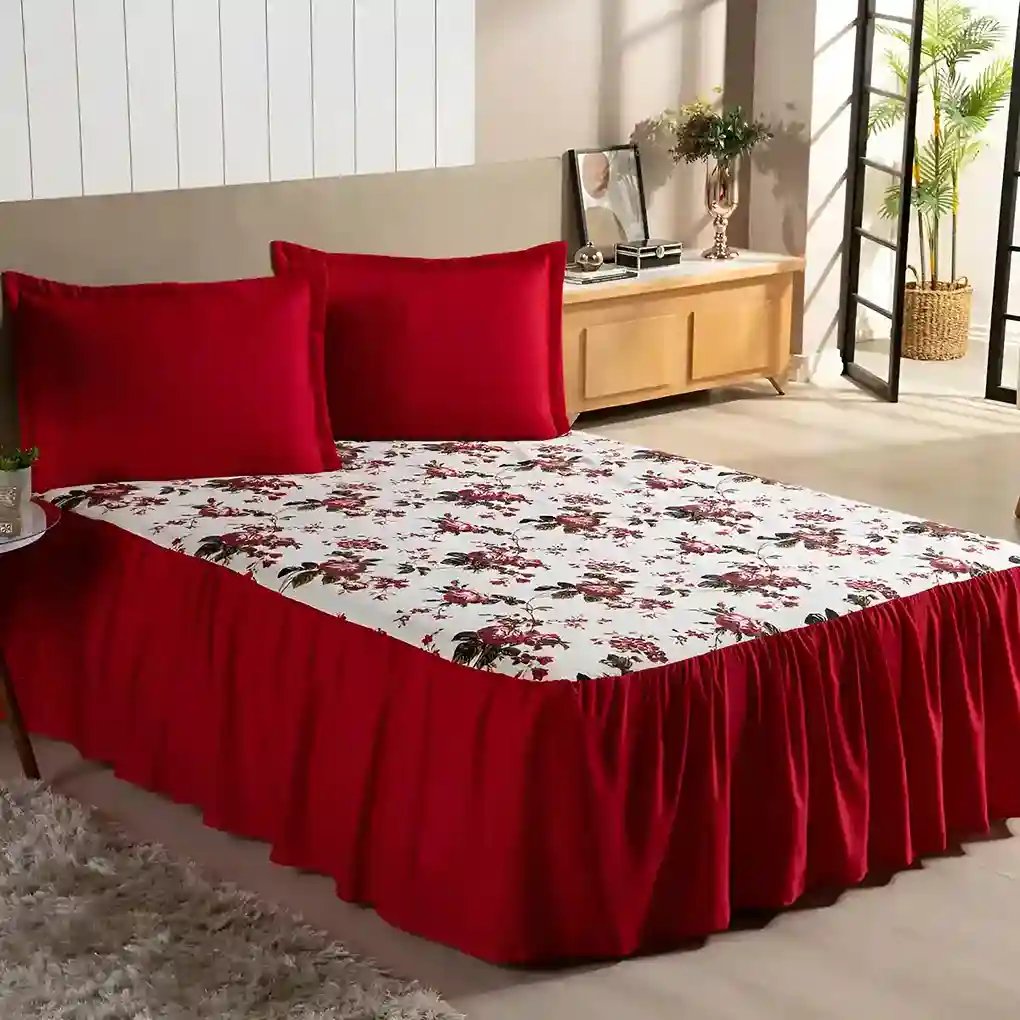 Kit Colcha Ana Casal Padrão 3pçs Estampada Floral Com Babado