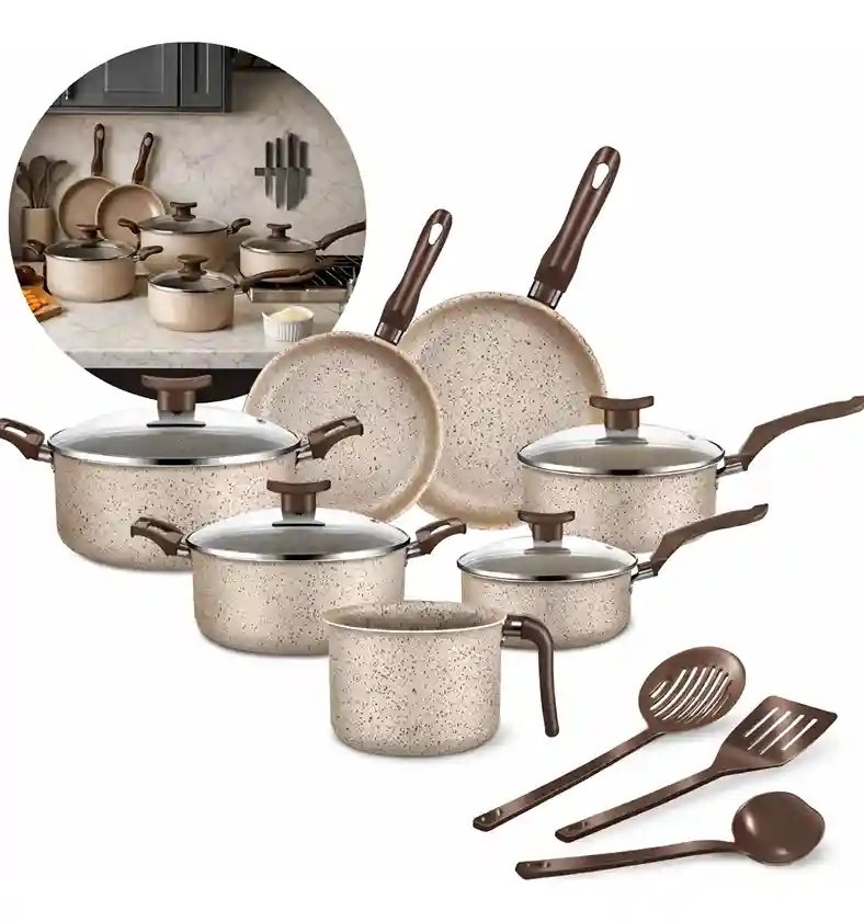 Conjunto De Panelas Antiaderente 10 Peças Coffee Cappuccino