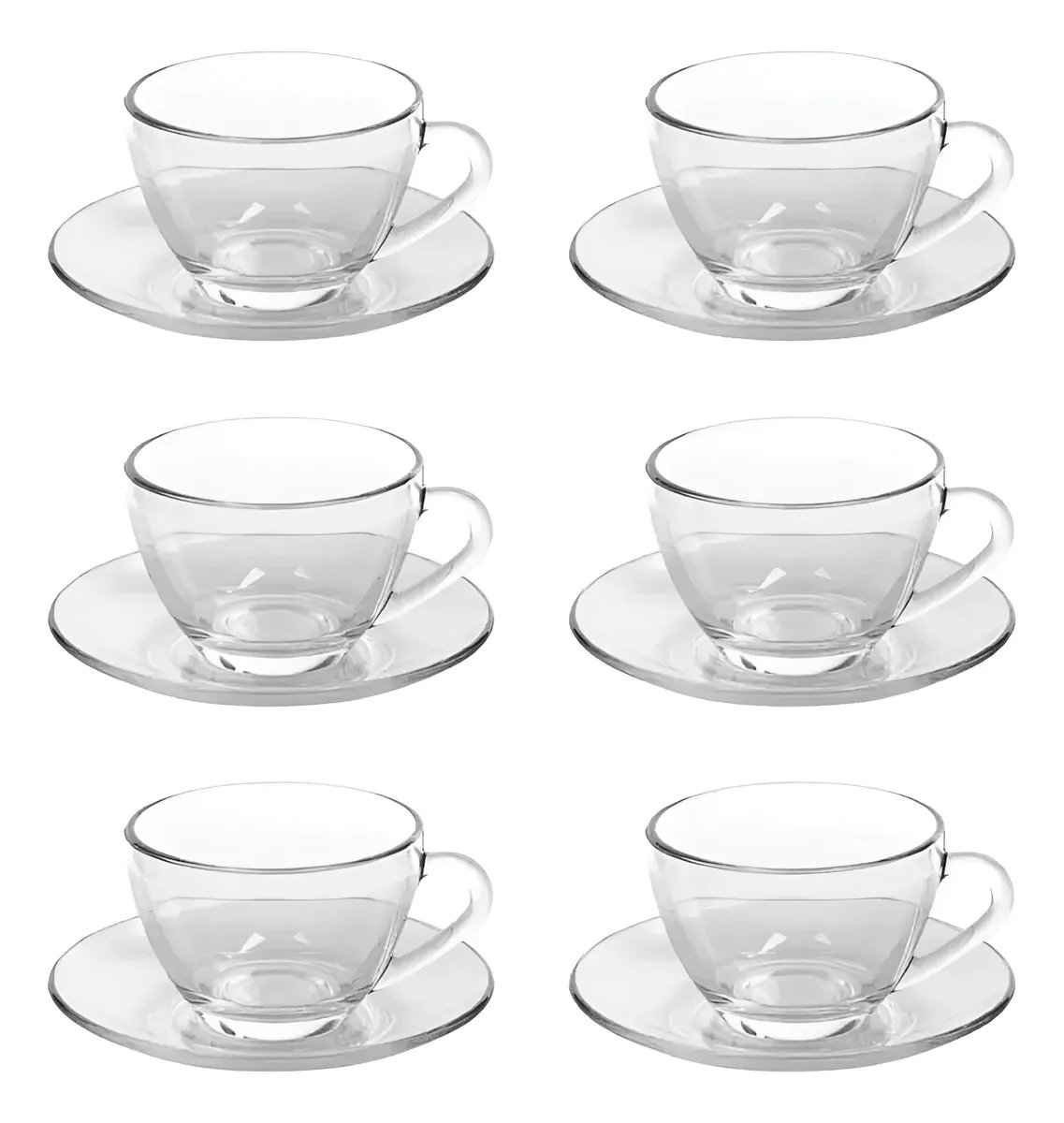Jogo Xícaras Café Com Pires Chá 12 Peças Vidro Incolor 230ml
