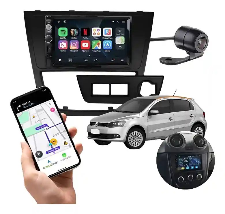 Central Multimídia Mp5 Vw Gol G5 + Moldura Preta + Câmera