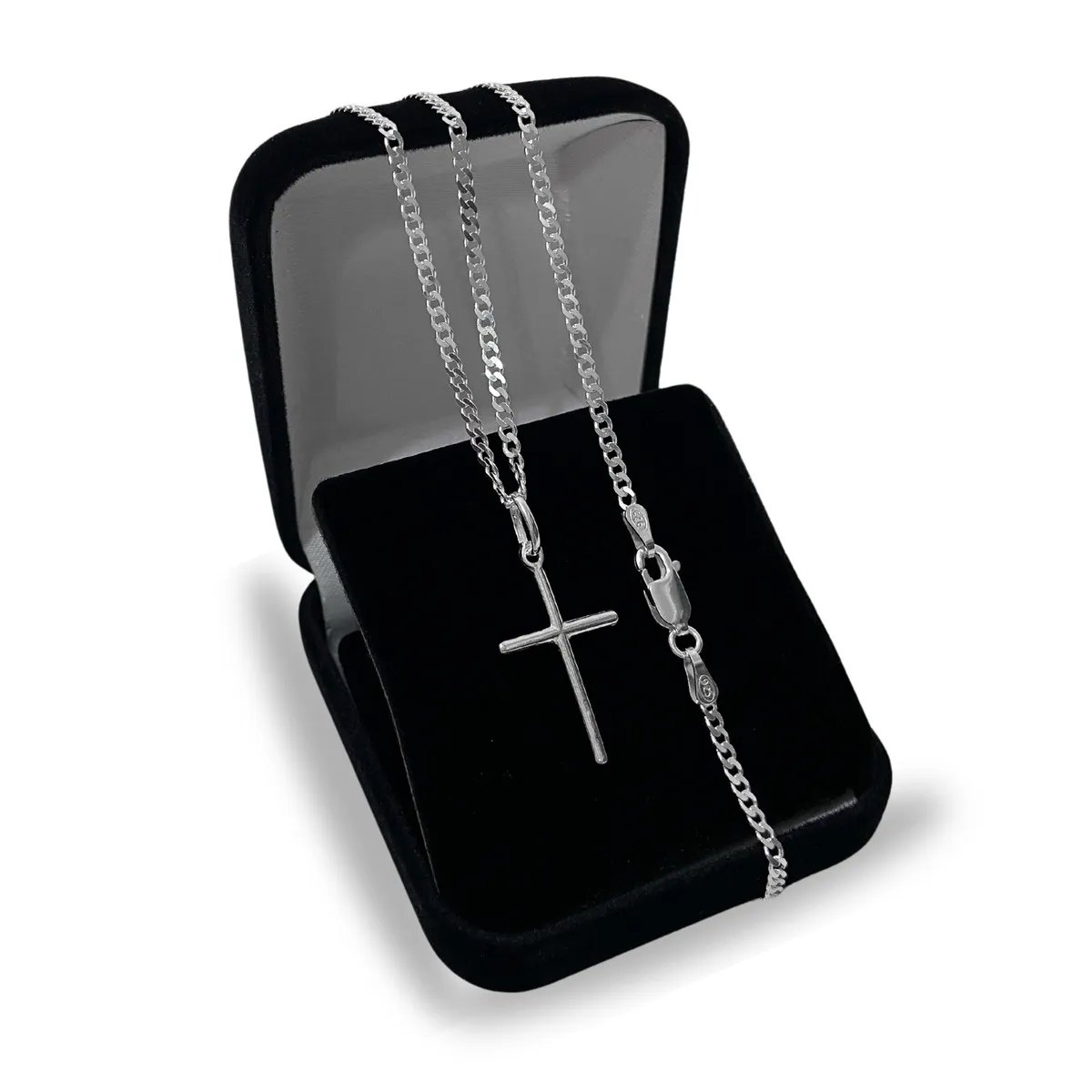 Corrente De Prata 925 Masculina Legítima Italiana + Pingente Crucifixo Cordão Correntinha Maciça Com Cruz C...