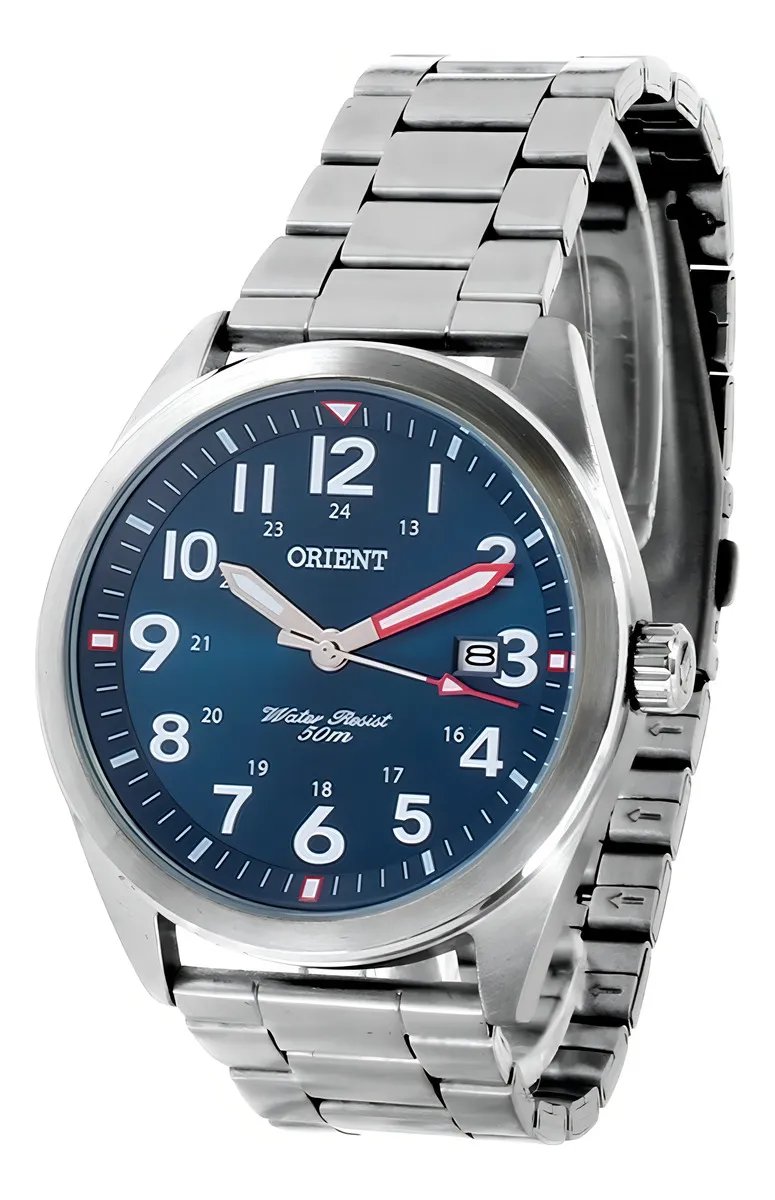 Relógio Orient Masculino Mbss1396 D2sx Azul Aço Analogico Correia Prata Bisel Prata