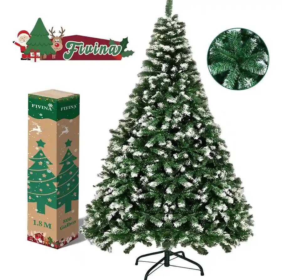 Árvore De Natal Nevada 1.8m C/800 Galhos Luxo Pinheiro Neve Pinheiro Fivina