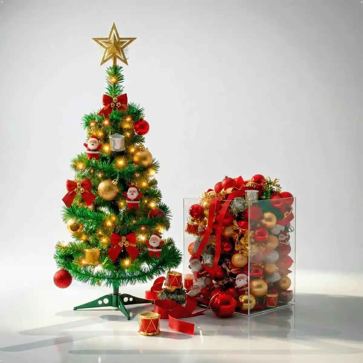 Árvore De Natal Decorada Com Enfeites Pequena Mesa Completa