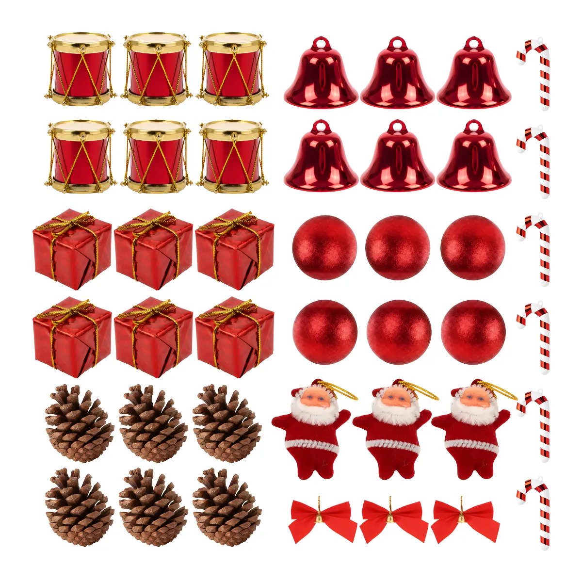 Kit Enfeites Para Árvore De Natal 42 Peças Bolinha Papai Noel Laço Pinha Presente Tambor Pendentes Natalino...