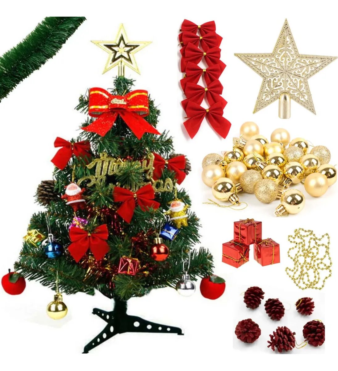 Arvore De Natal Completa Decorada 90cm Enfeites Verde Premium Sidequest