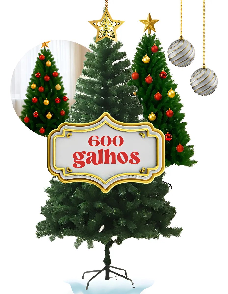 Arvore Natal Grande 1,8 700 Galhos Premium Cheia Base Ferro Verde-escuro