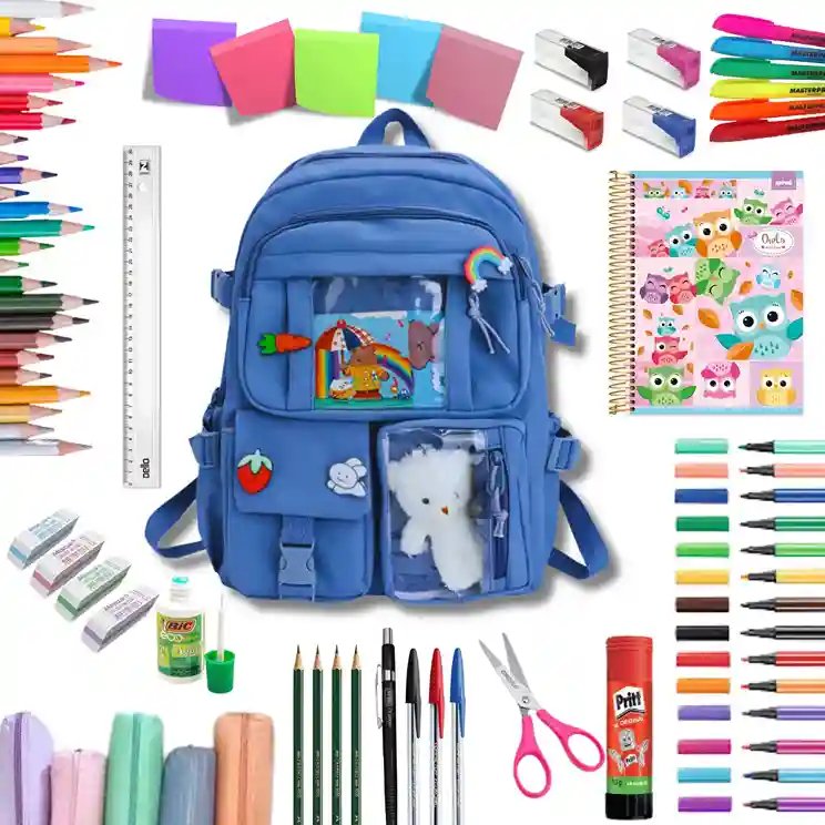 Kit Material Escolar Com Caderno E Mochila Econômico