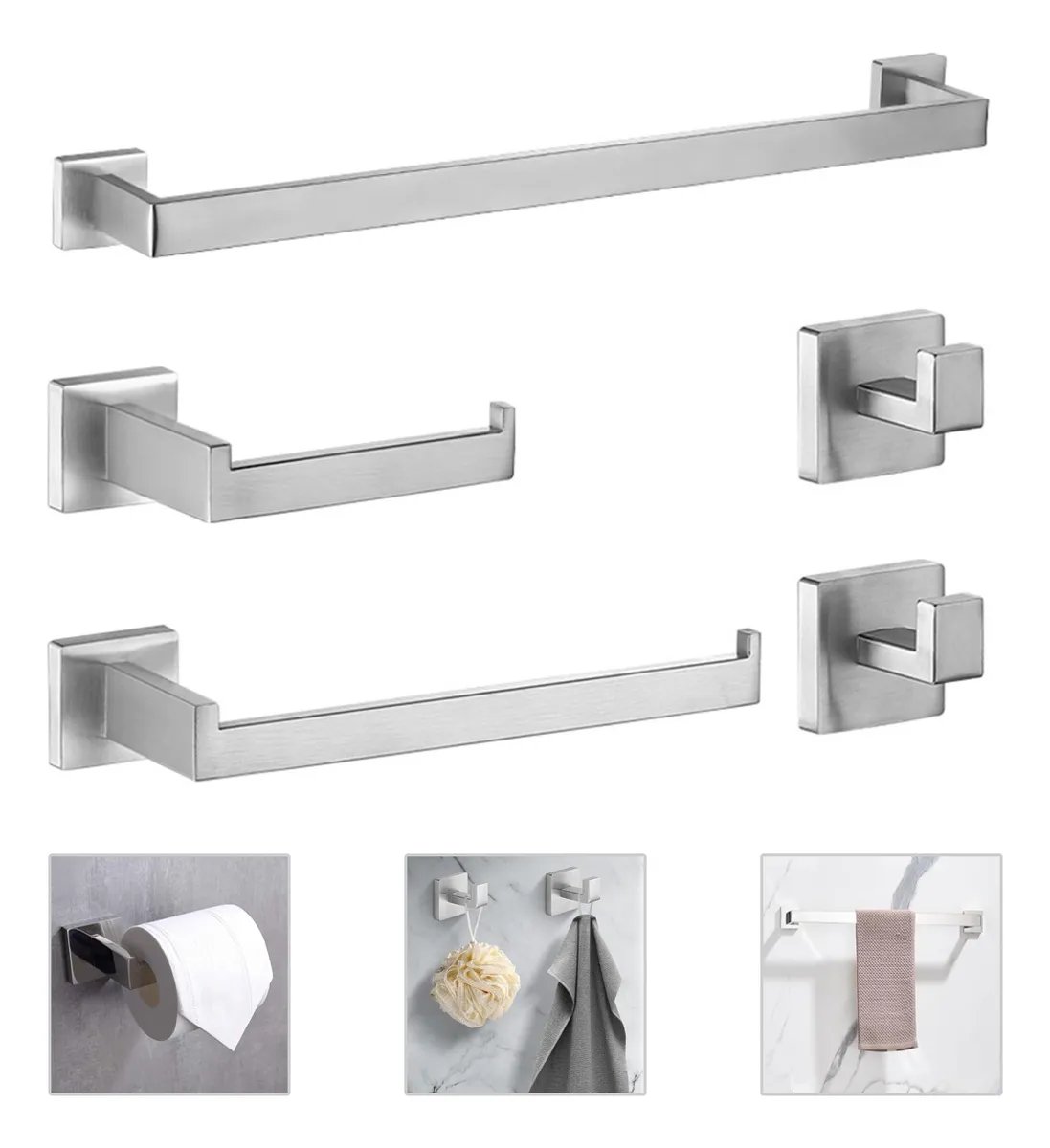 Kit 5 Conjunto Acessorios Suporte Banheiro Lavabo Inox 304 Prateado