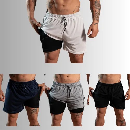 Kit 4 Shorts 2 Em 1 Masculino Dryfit Academia