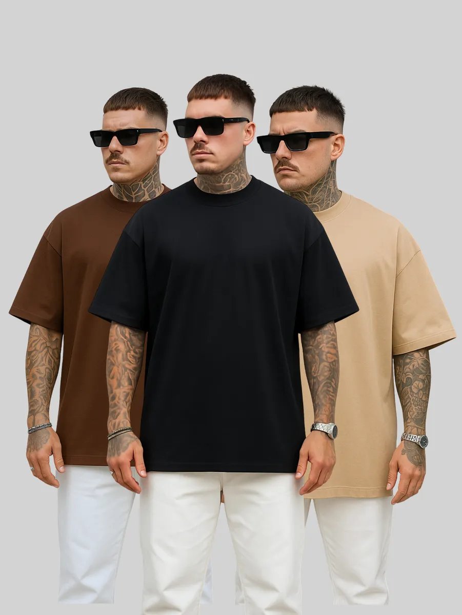 Kit3 Camiseta Oversized Lisa Algodão Grossa Streetwear Verão
