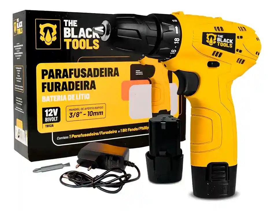 Parafusadeira Furadeira The Black Tools TB12A 3/8 a Bateria Cor Amarelo Frequência 60Hz